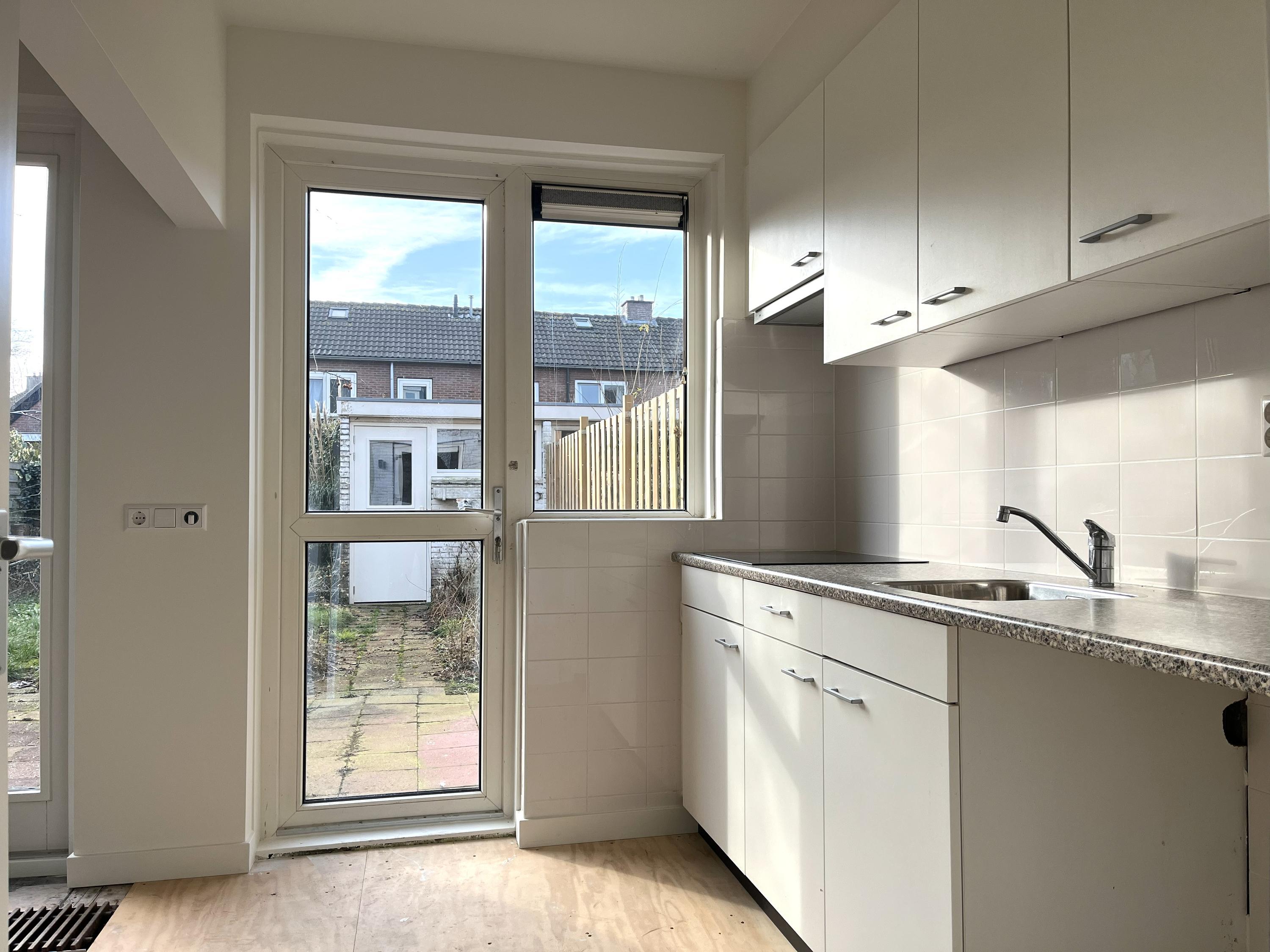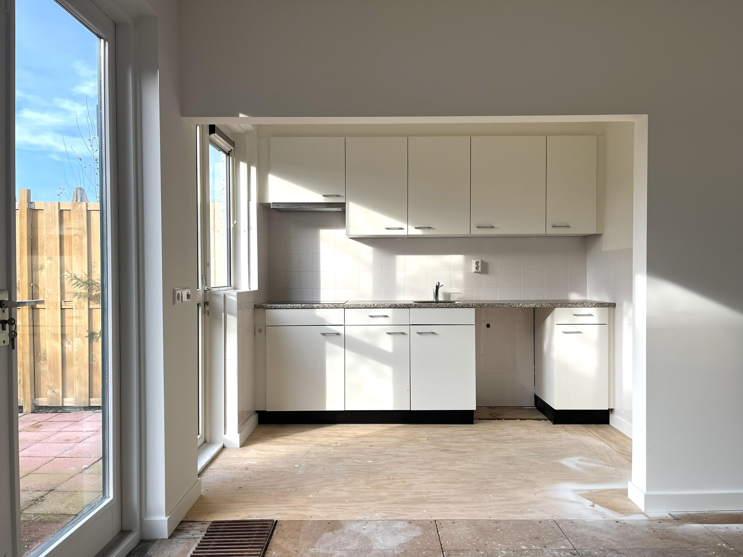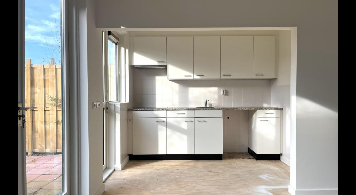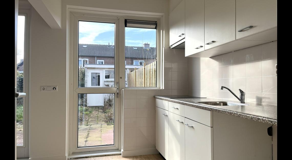 De woning van 86 m2 heeft een zonnige ruime woonkamer, toilet, trapkast, aparte keuken. Vaste trap naar de eerste verdieping. Op de 1e verdieping zijn 3 slaapkamers en een badkamer. In de kleine slaapkamer is de wasmachine aansluiting. Vanuit de keuken entree naar tuin.